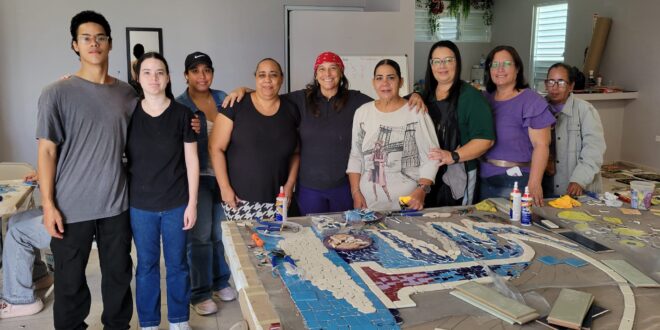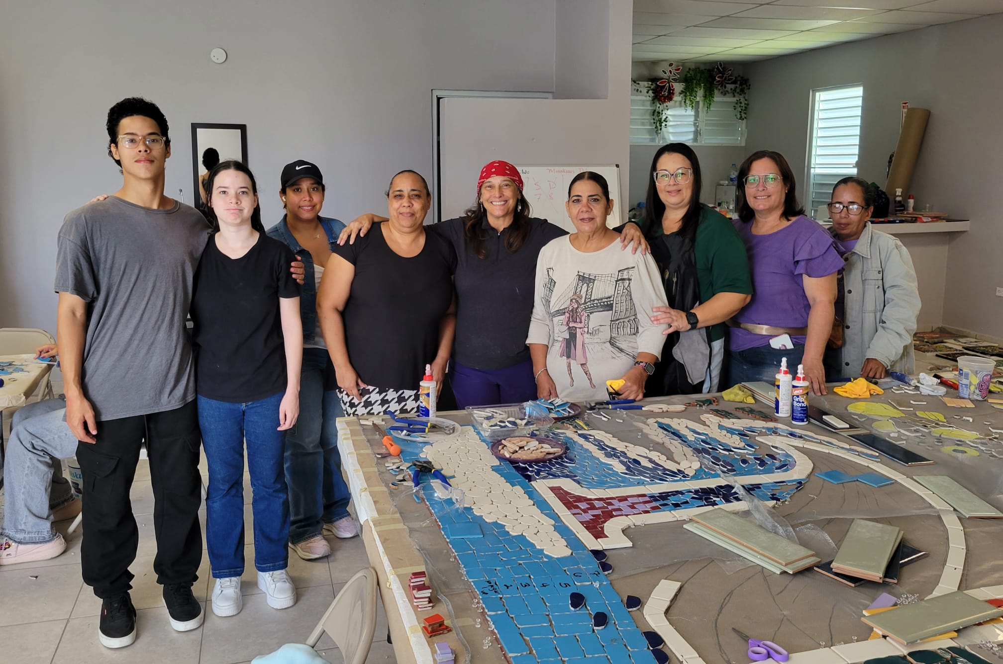 Como parte de la experiencia práctica, los estudiantes aplican lo aprendido mediante la creación de una obra de arte pública de gran formato, de siete pies por siete pies, que será instalada en la Plaza Pública de Naguabo.