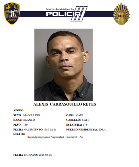 (17-marzo-2026) La jueza del Tribunal de Caguas, Vanessa Rozo Ortega encontró causa para arresto en todos los delitos contra Alexis Carrasquillo Reyes y Elimar Medina Colón, de 46 y 45 años de edad respectivamente y residentes en Cidra, con una fianza global de $7,500, la cual prestaron.