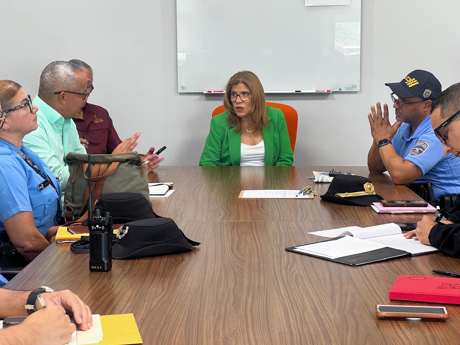 La alcaldesa Rosamar Trujillo Plumey; Cándido Santiago, de la Oficina de Enlaces Comunitarios; Zayra Delgado, Ayudante Especial de Ayuda al Ciudadano; Iván Cintrón, de la Oficina de Comunicaciones y José Juan García Díaz, Comisionado de la Policía Municipal estuvieron discutiendo la estructura operacional, la logística del evento y la integración de servicios municipales en apoyo a la Policía, garantizando una intervención coordinada y centrada en las necesidades de la comunidad.